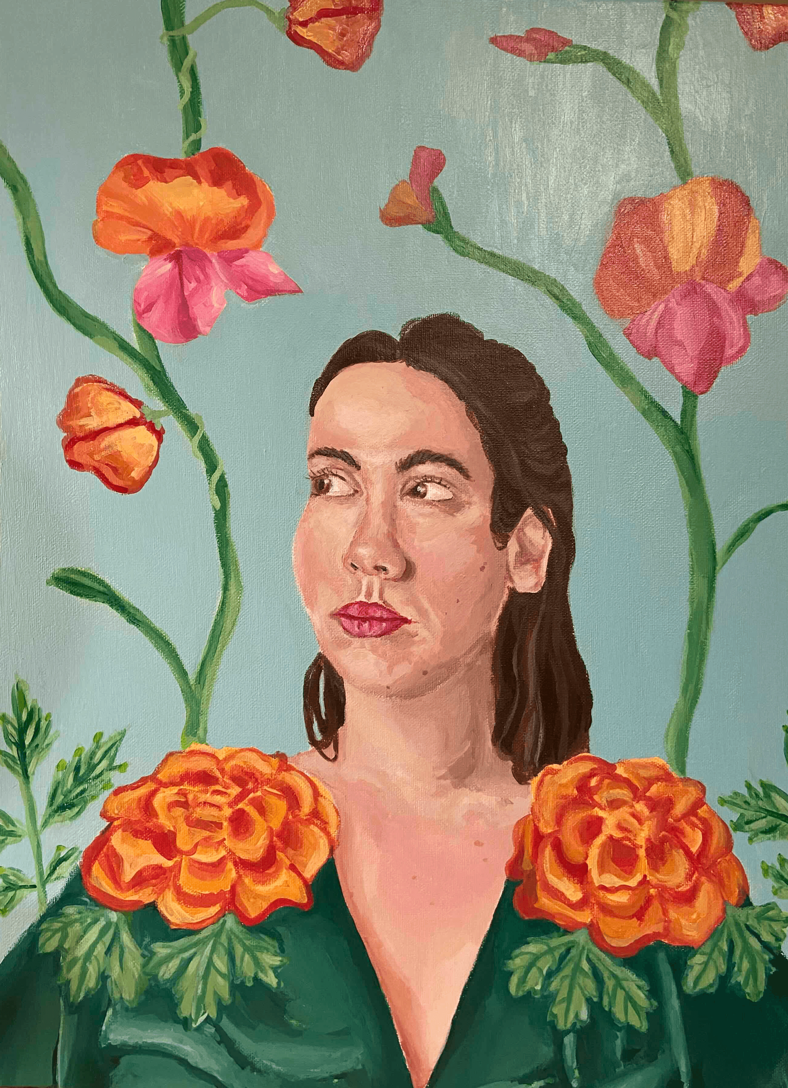 Portrait of my sister, with a strong tie to identity and her connection to her Australian and French identity.